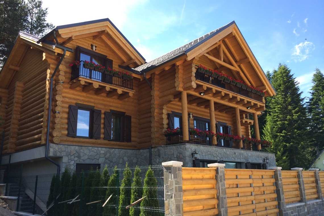 Casa Sinaia: Casa din lemn rotund necalibrat, finalizata la sfarsitul anului 2015. Pentru aceasta casa s-au folosit busteni de molid cu diametrul mediu de 35 cm. Suprafata construita desfasurata a casei este de aproximativ 380 mp. Pe zona de parter s-a facut placare cu gresie, iar la etaj dusumea din lemn. Pentru finisajul interior al bustenilor s-a folosit ceara de albine. De asemenea, pentru etanseizare, imbinarea dintre busteni a fost sigilata cu silicon elastic pentru lemn, culoare stejar. Tamplaria este din lemn stratificat, dublu vitraj si obloane din lemn. Invelitoarea este tigla ceramica.